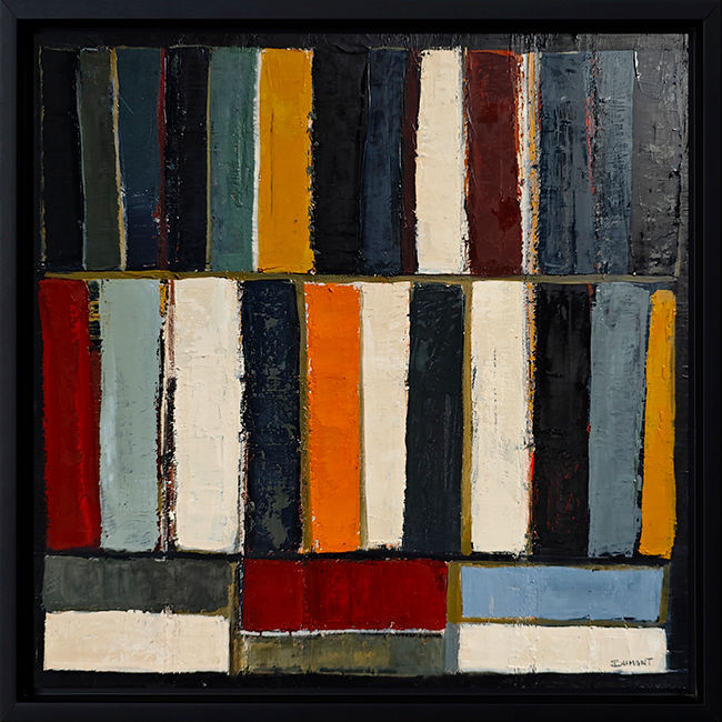 Les tableaux de Sophie Dumont révèlent un univers où les bibliothèques deviennent architecture intérieure, les paysages s’estompent en résonances, et l’atelier devient un théâtre abstrait.